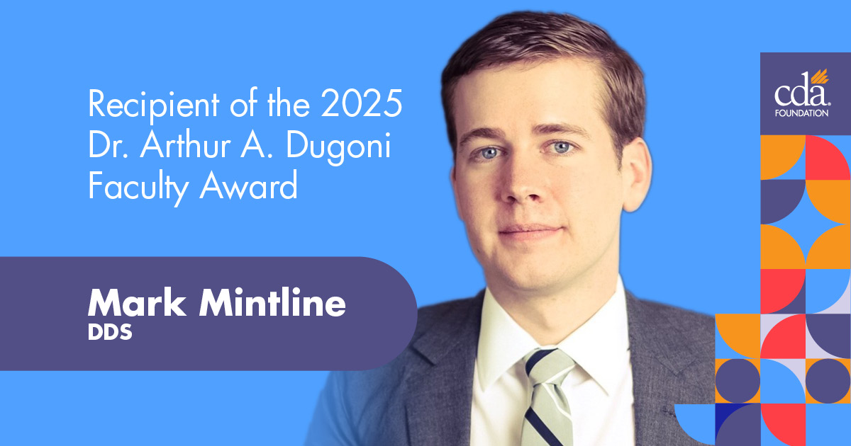 Mark Mintline, DDS, an associate professor at Western University of Health Sciences , has received the CDA Foundation’s 2025 Dr. Arthur A. Dugoni Faculty Award.