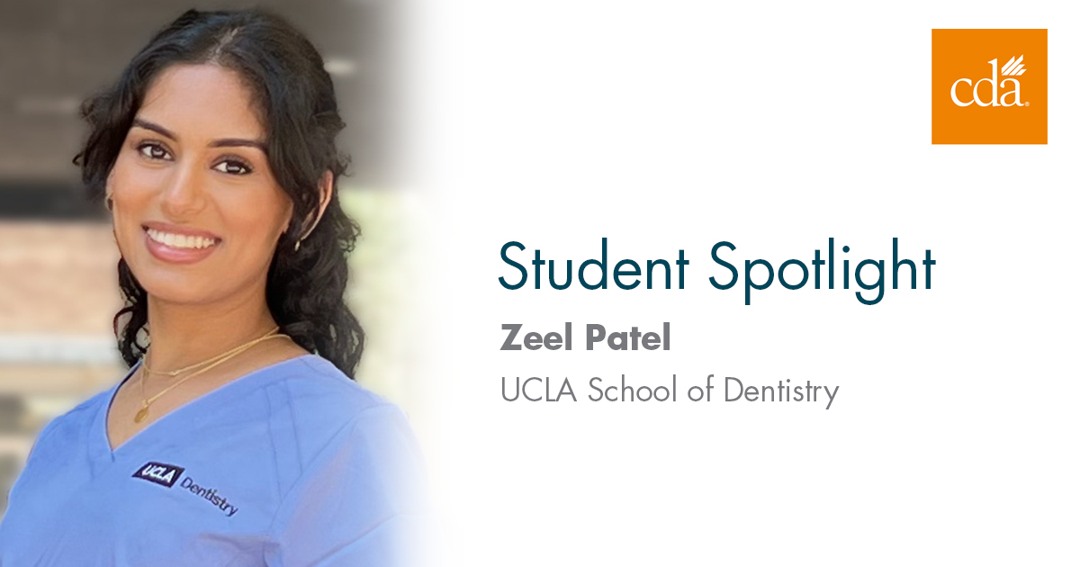 Each month, CDA highlights a student from one of California’s seven dental schools. Get to know Zeel Patel of UCLA’s class of 2028.