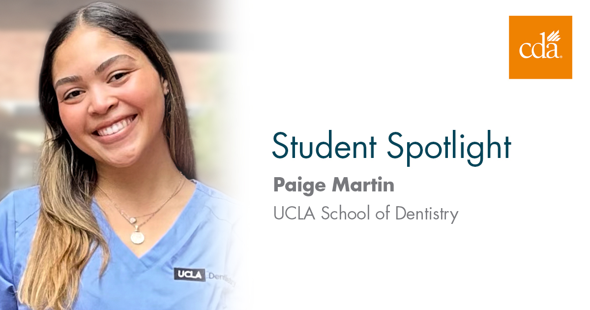 Each month, CDA highlights a student from one of California’s seven dental schools. Get to know Paige Martin of UCLA School of Dentistry’s class of 2028.